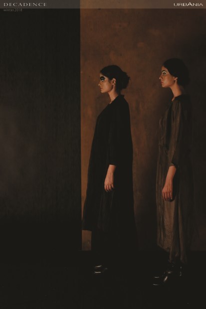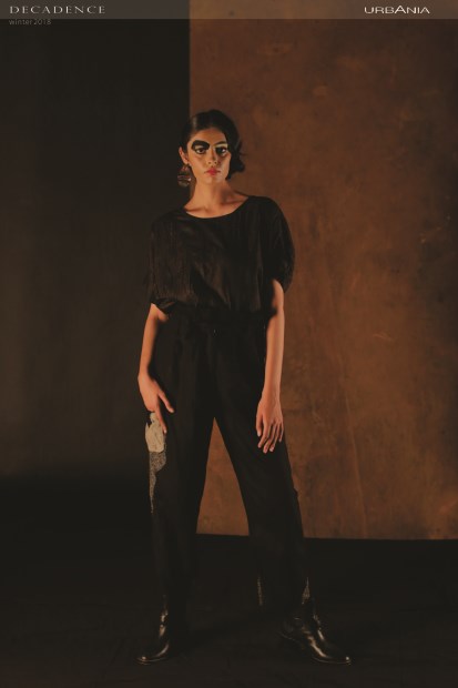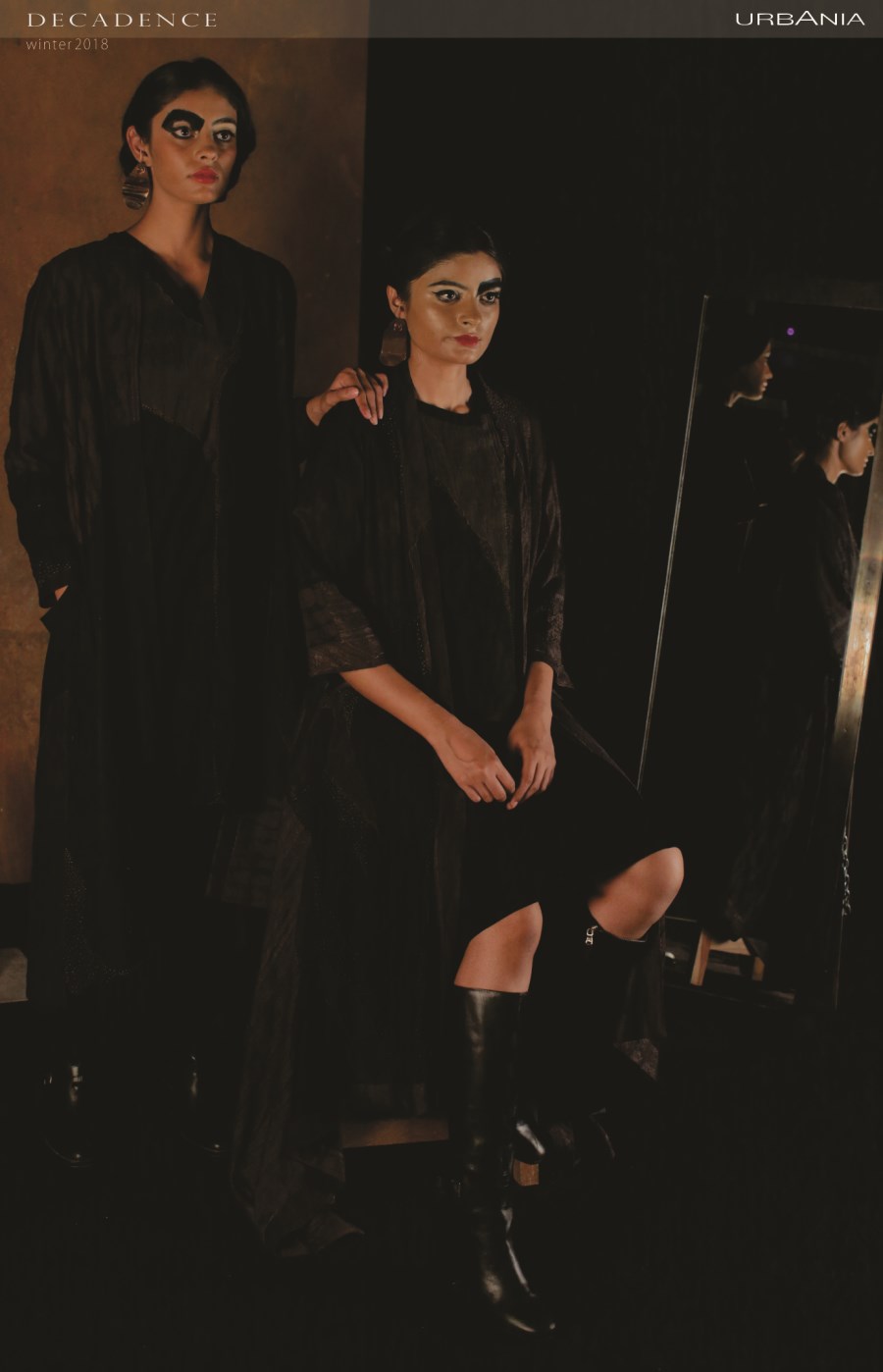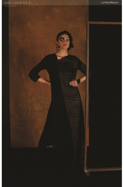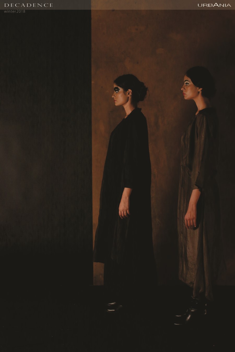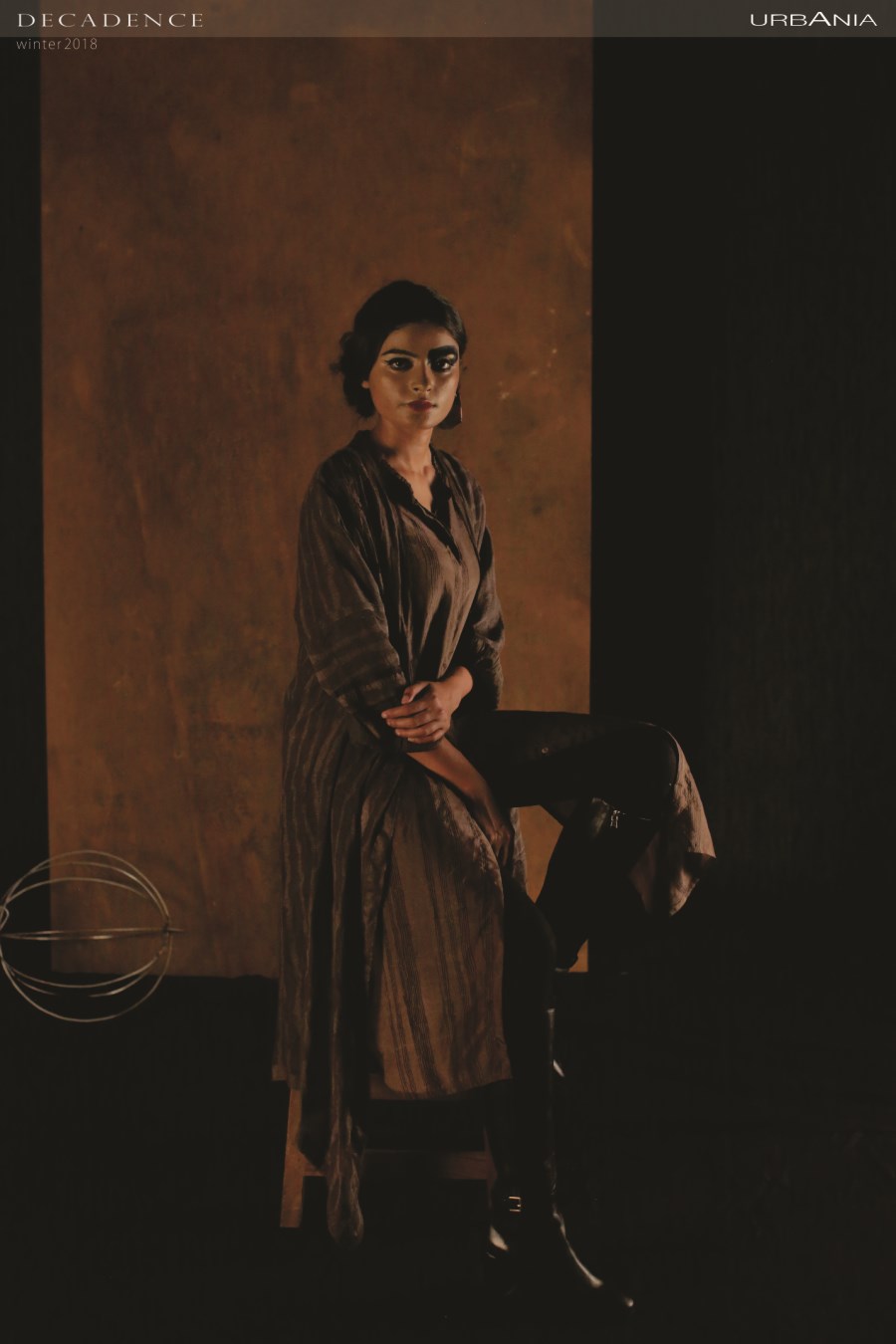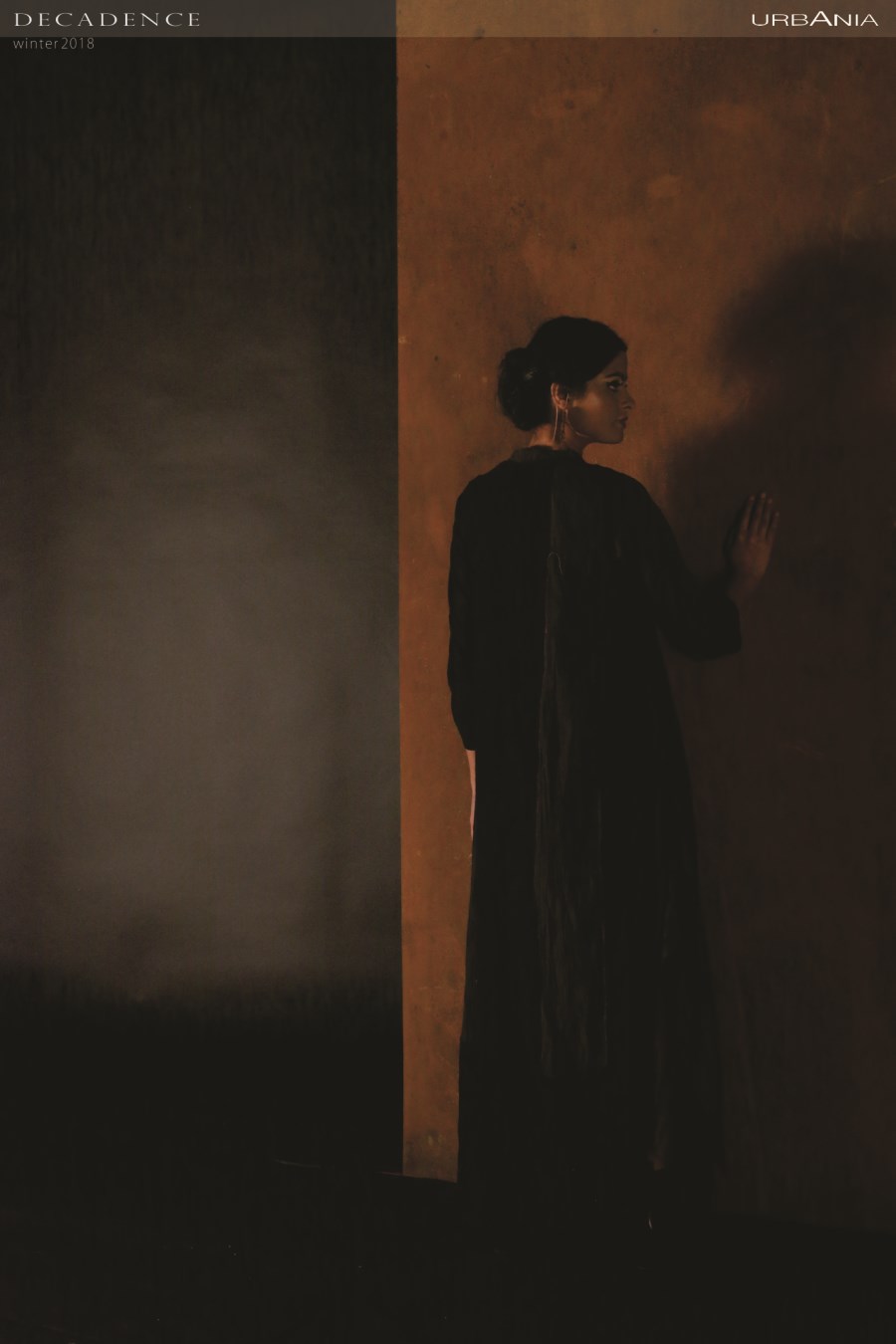 Enjoy the fluidity of handwoven silks layered in dark brooding colors of winter and the perfection of RUST staining and Syahi printing in the truest Wabi-Sabi traditions. Frayed and burnt edges combined with Ruching impart perfect decayed impermanence to this collection of shirts, dresses, overlays and jackets.