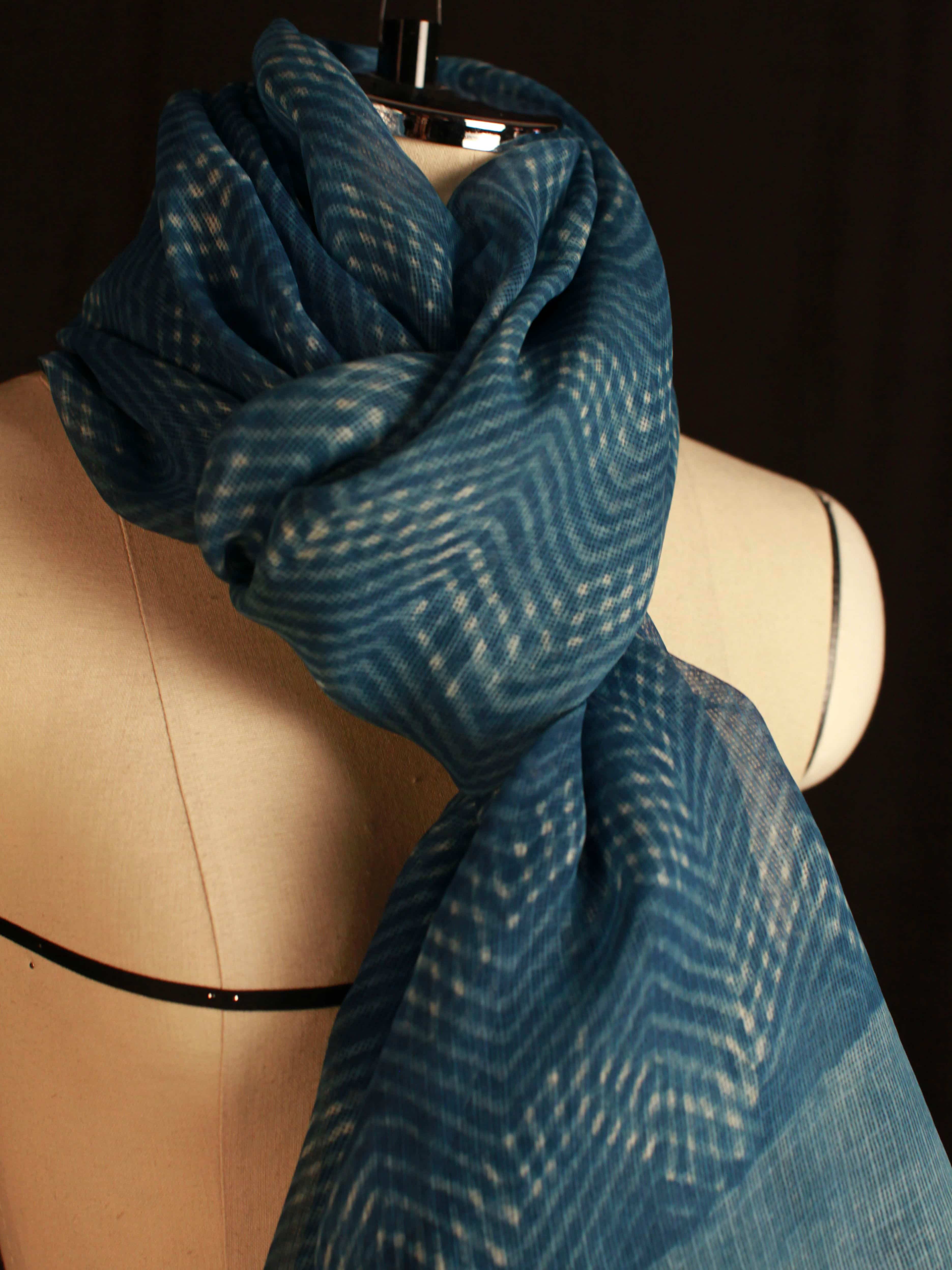 This Stole has been printed using Hand Blocks and with Natural Dyes and in many cases on Hand Woven Silk.  Imperfections in printing and weaving are inherent and usually cannot be avoided - in fact, these imperfections impart a unique character and mystique to each piece.