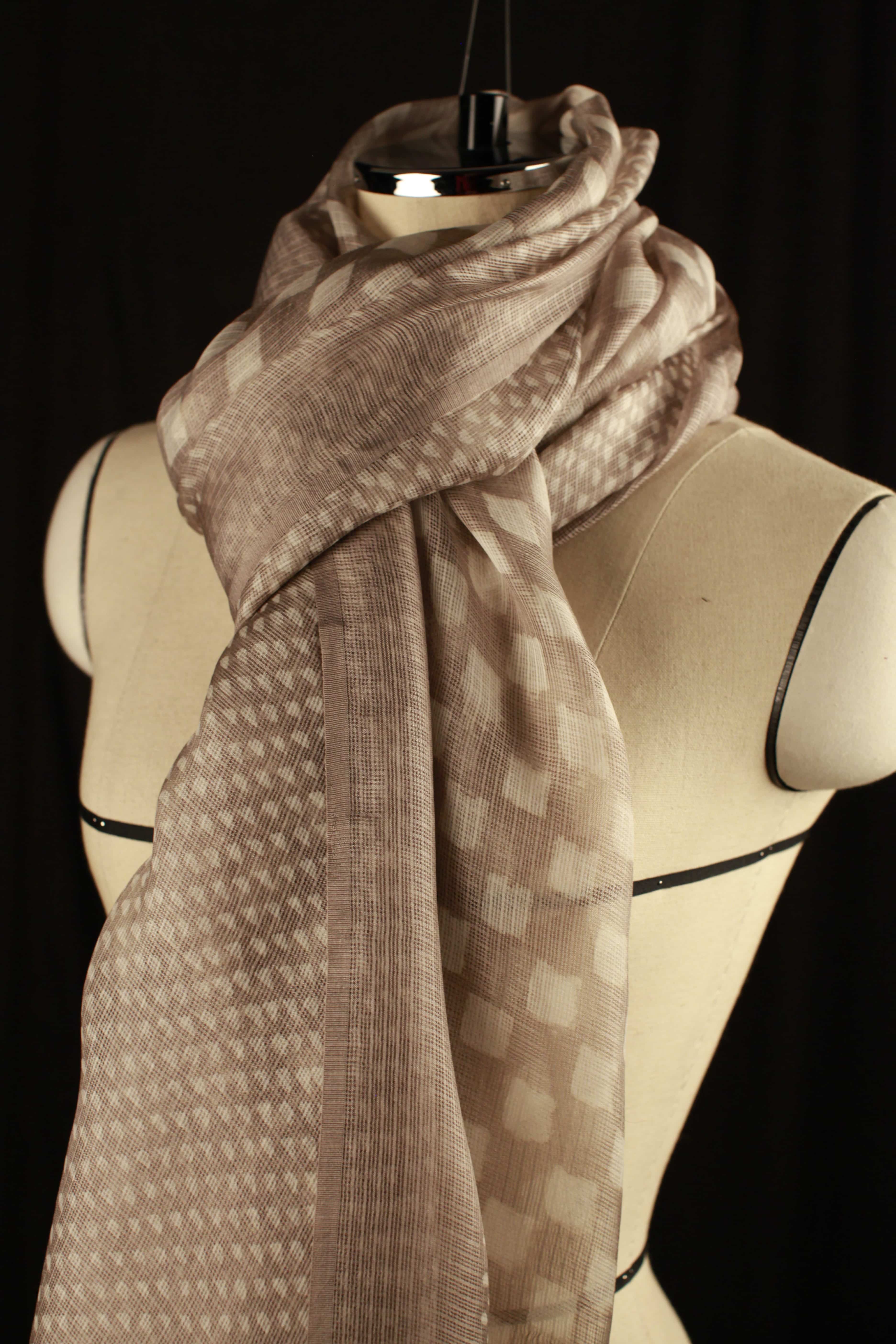 Exquisite, handwoven Silk Doria exudes sophistication in this cheqeuered print using natural kashish dye.