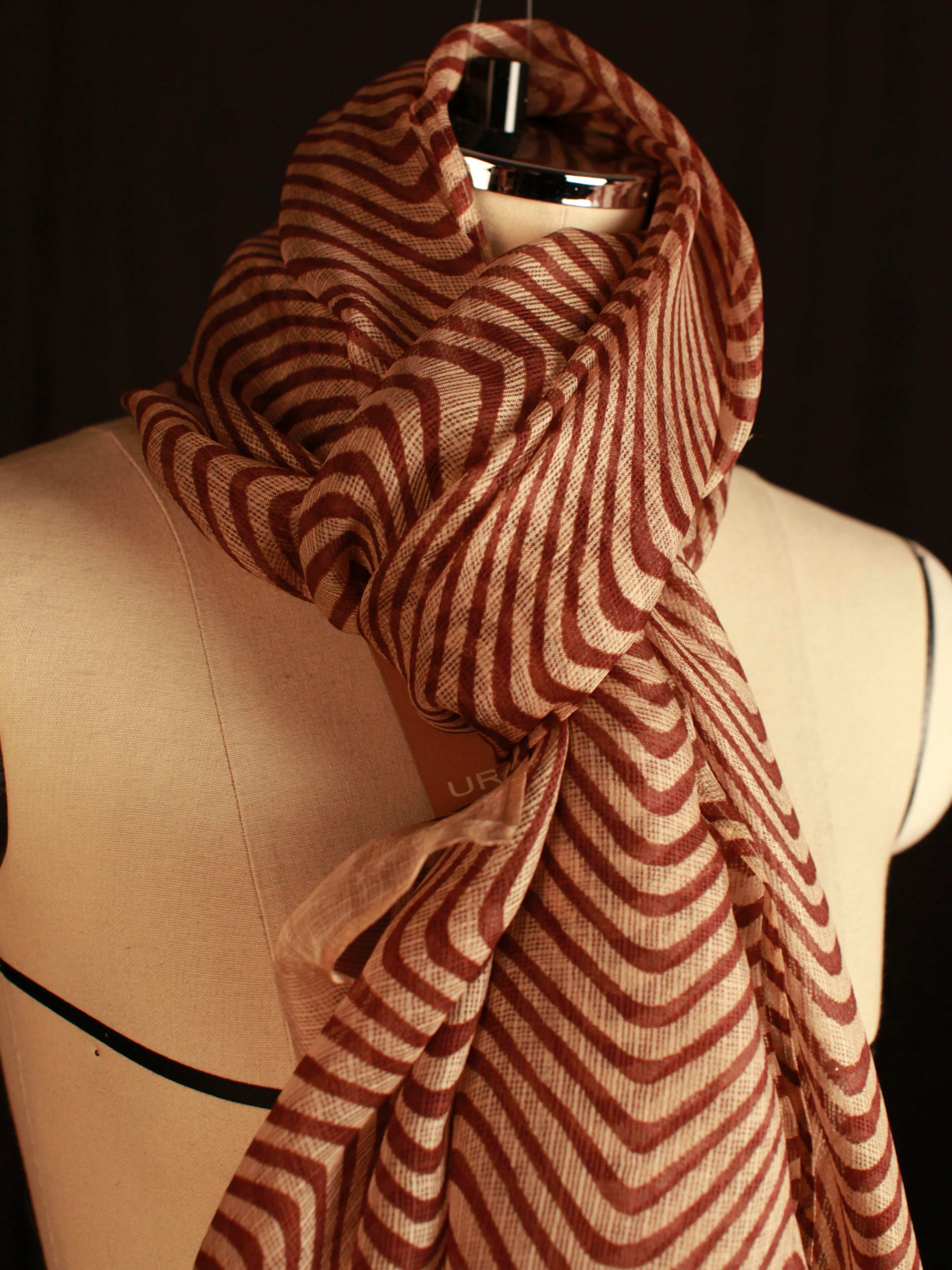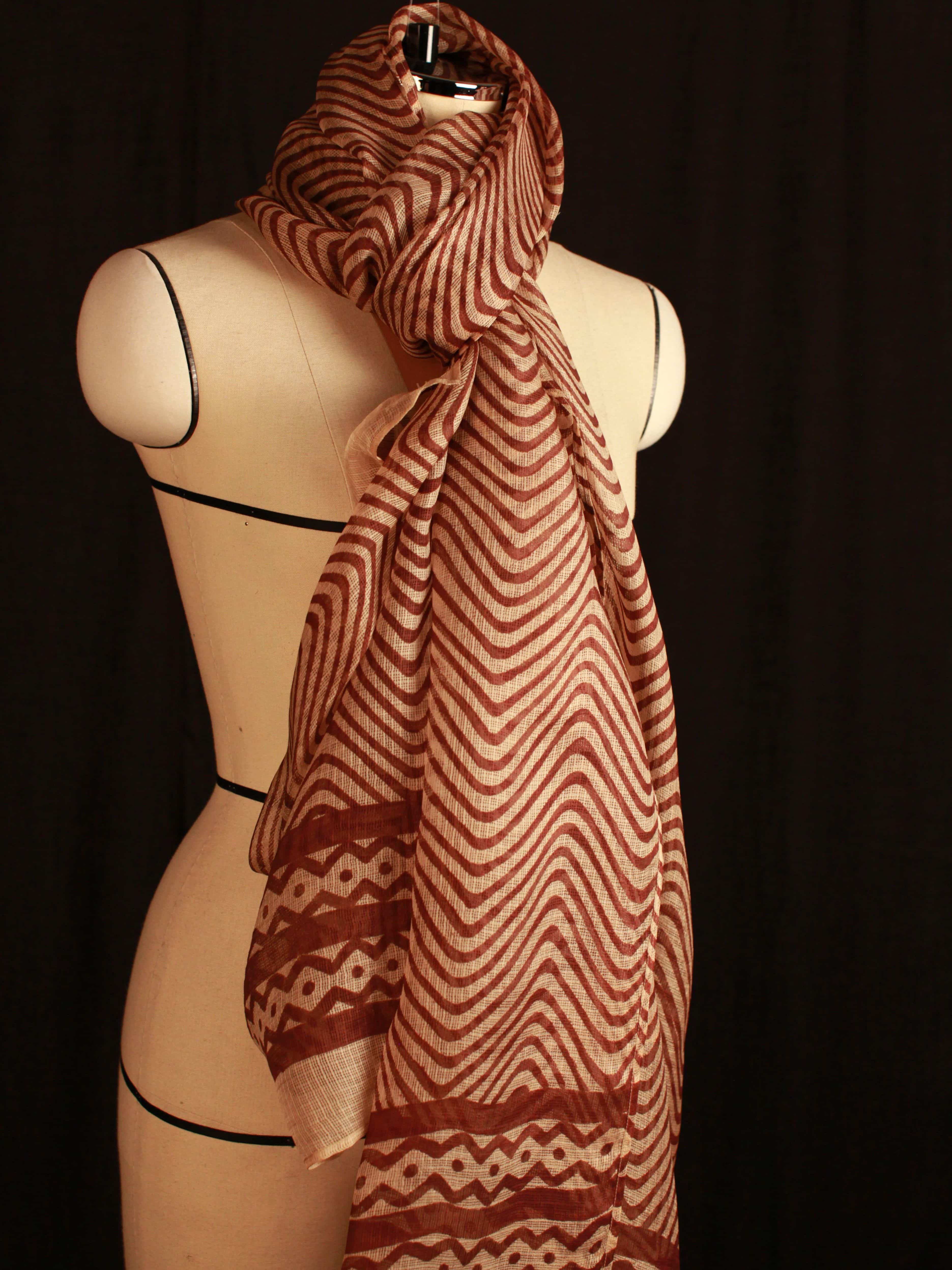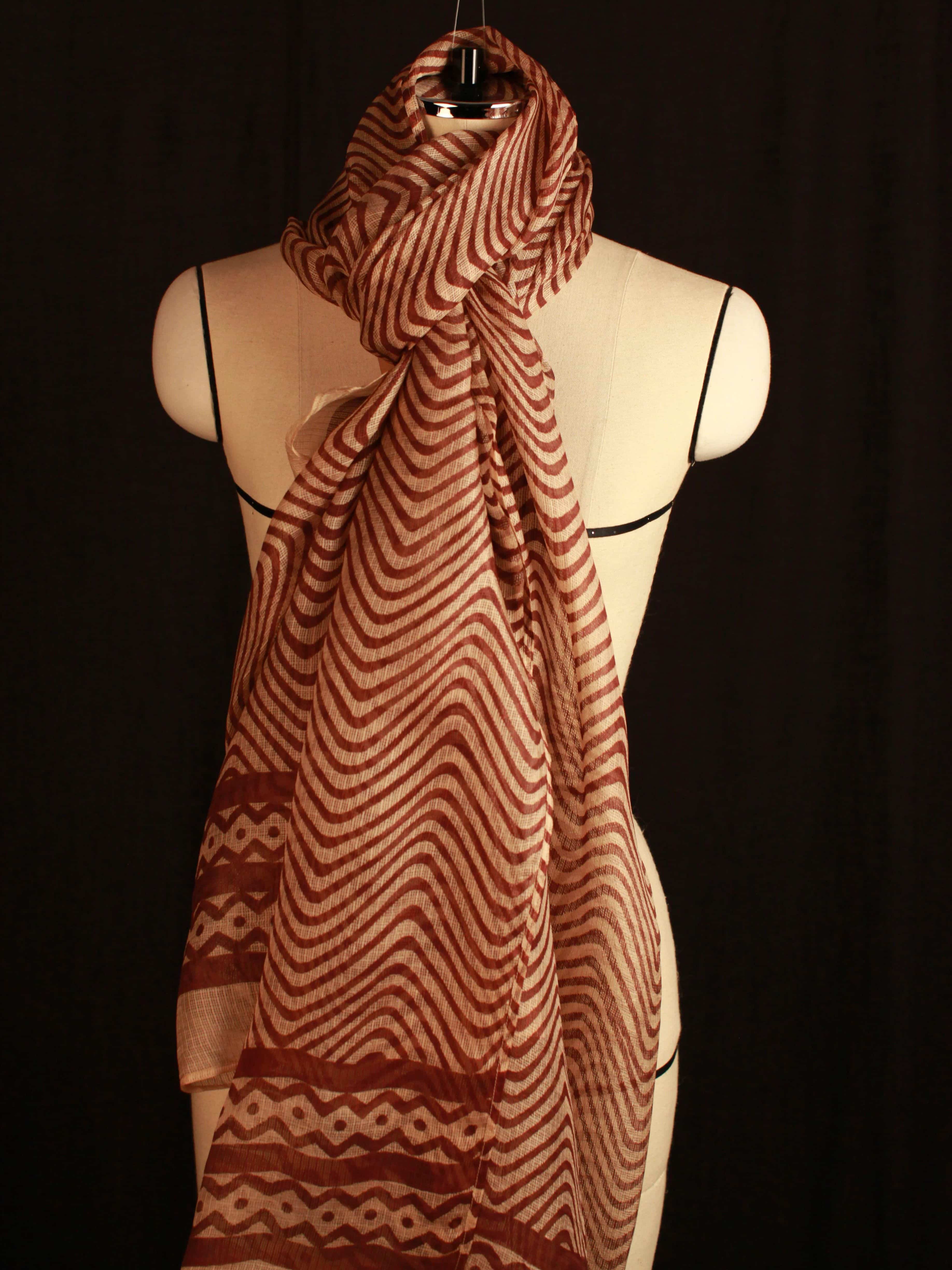 Our Signature Chevron Print in Bagru Red on the beautiful Silk Doria Fabric. Use as scarf or duppatta.