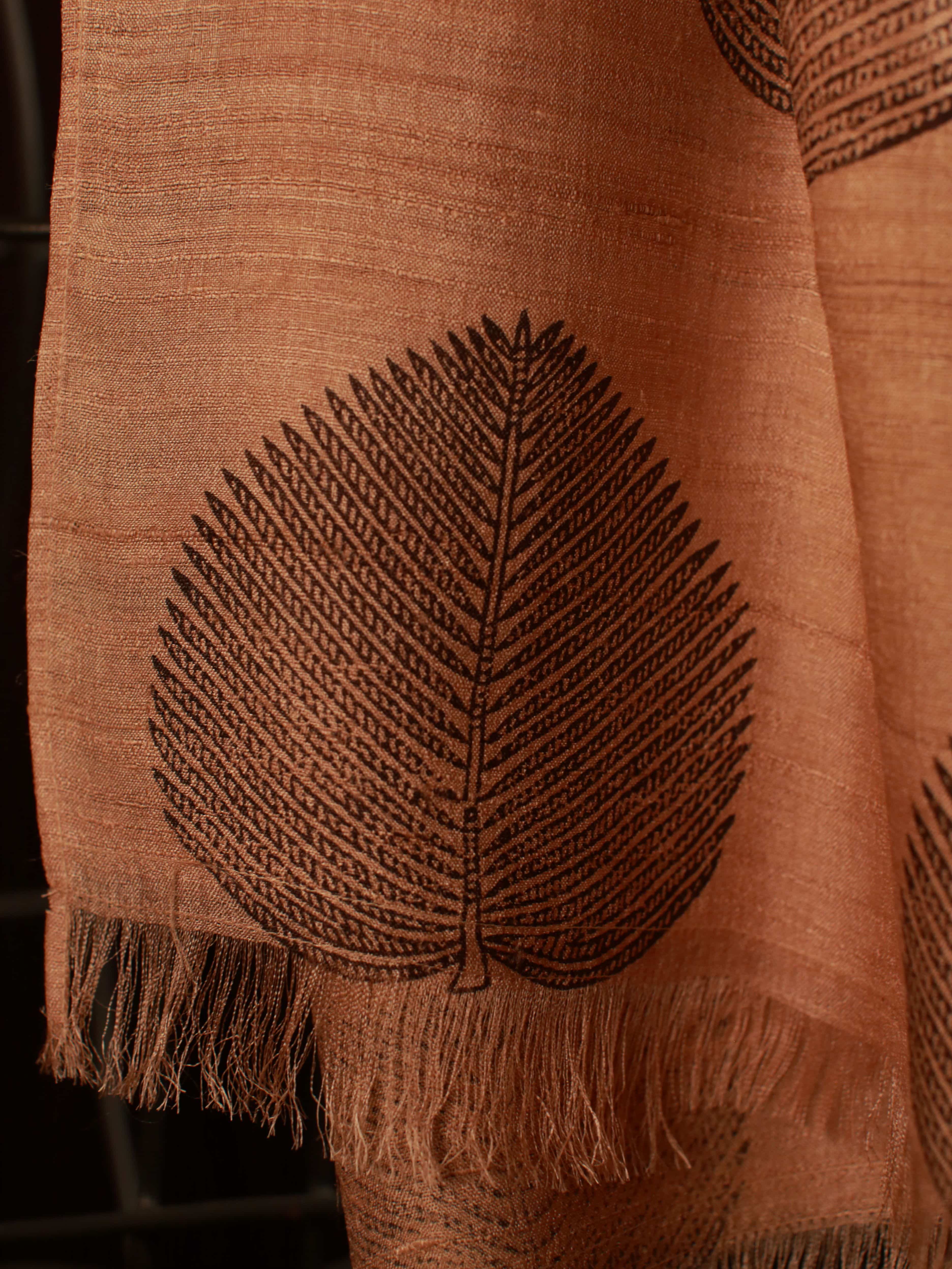 A Bold Leaf Print, on handwoven silk - will add glamor to any outfit.