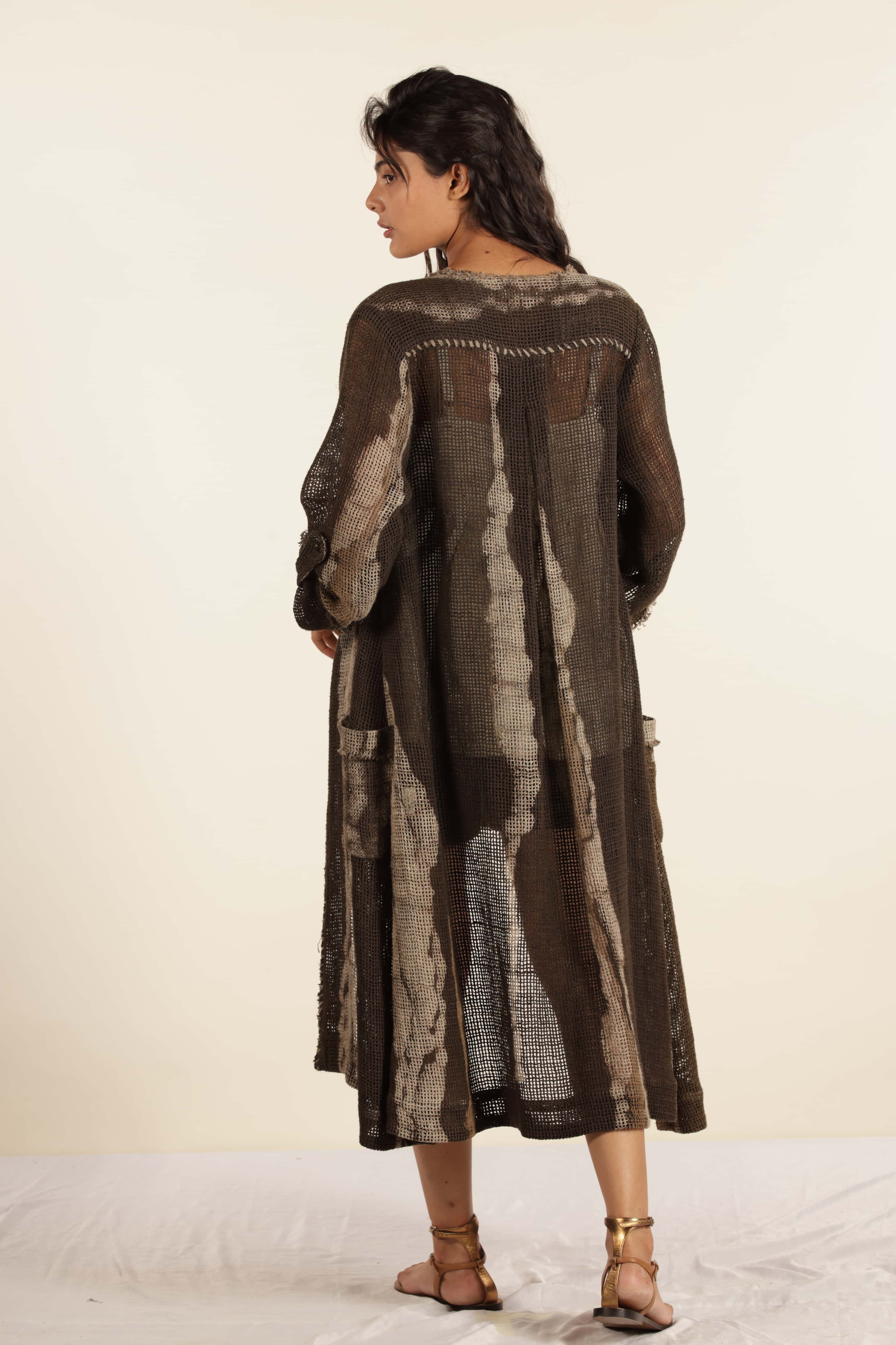 A perfect summer lounging ensemble - with a gorgeous hand-woven linen overlay, teamed with a crackled gathered linen top and linen shorts.