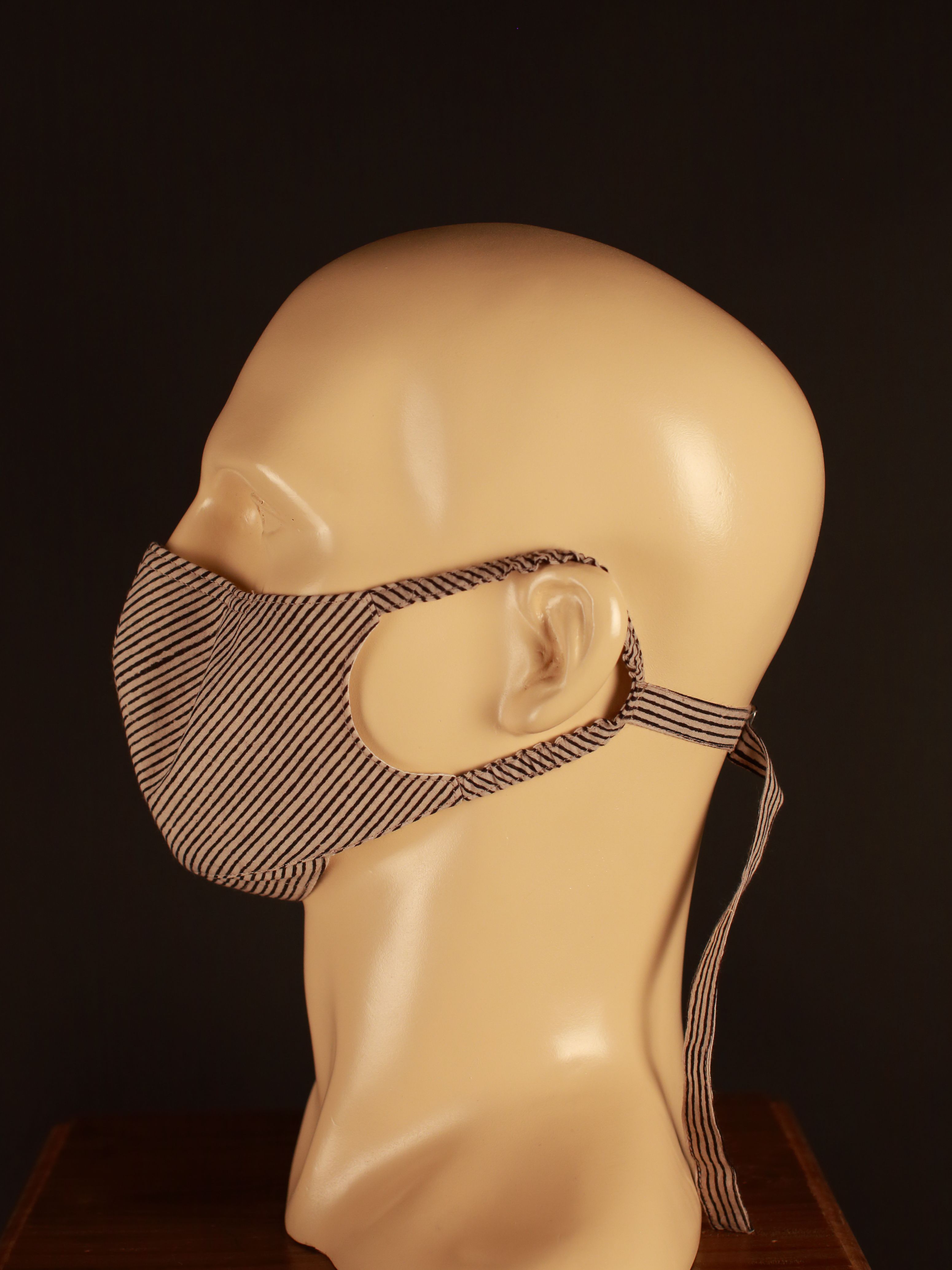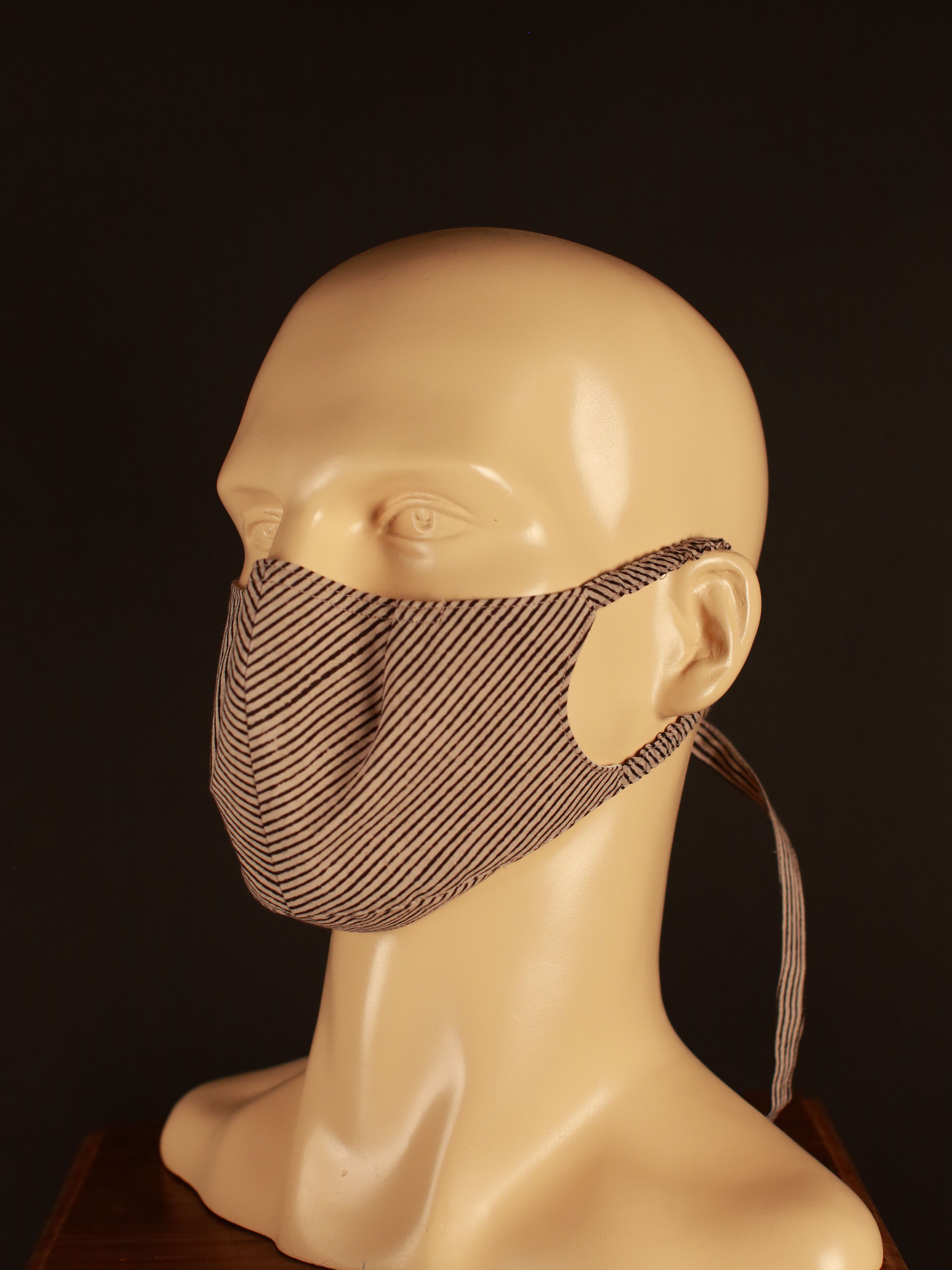 This mask uses a Stripes motif hand block print with Mineral Dyes along with our signature construction with a stronger, wider and padded nose strip for better contouring around the nose bridge to ensure that you breathe through the fabric and keep yourself and those around you safe.