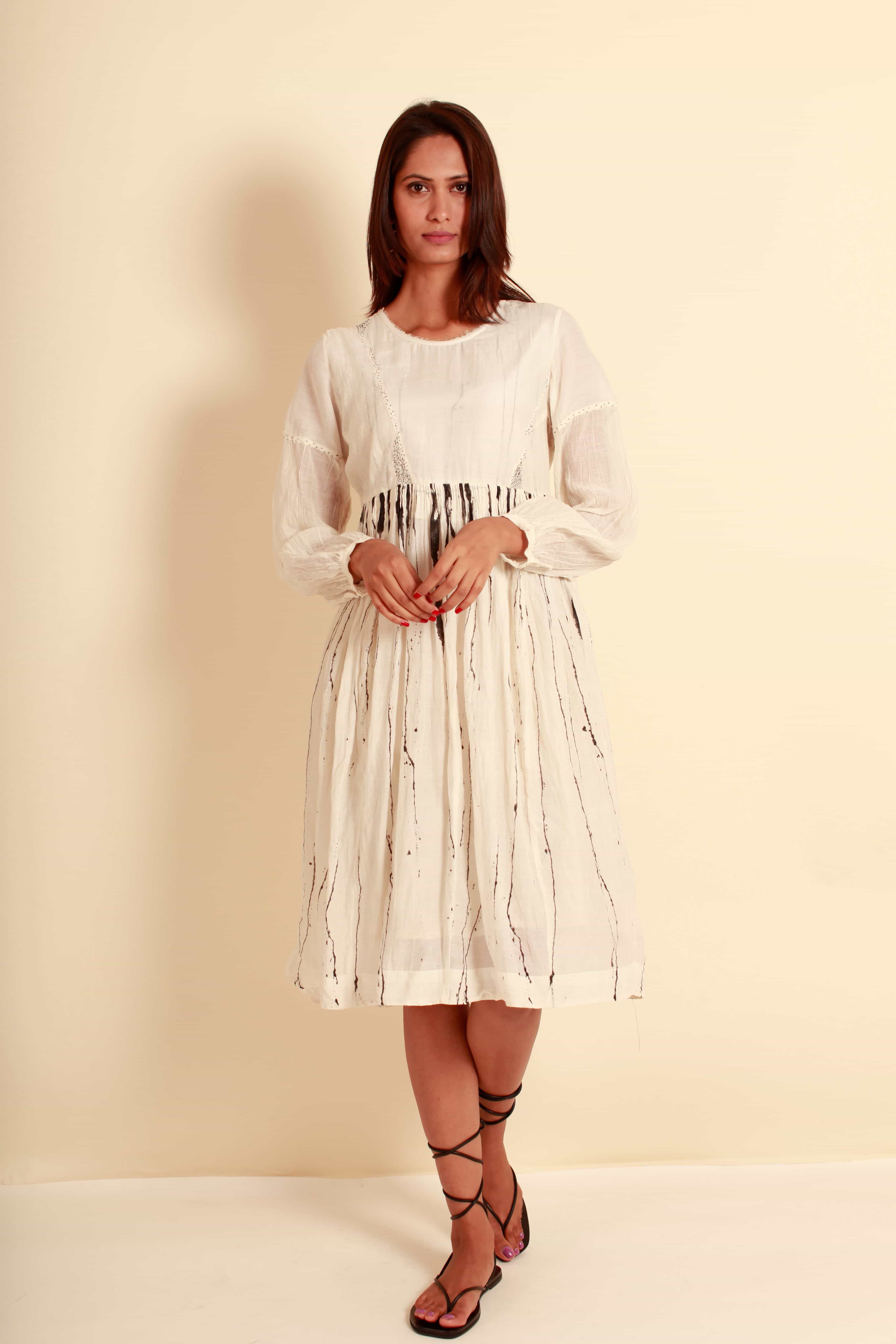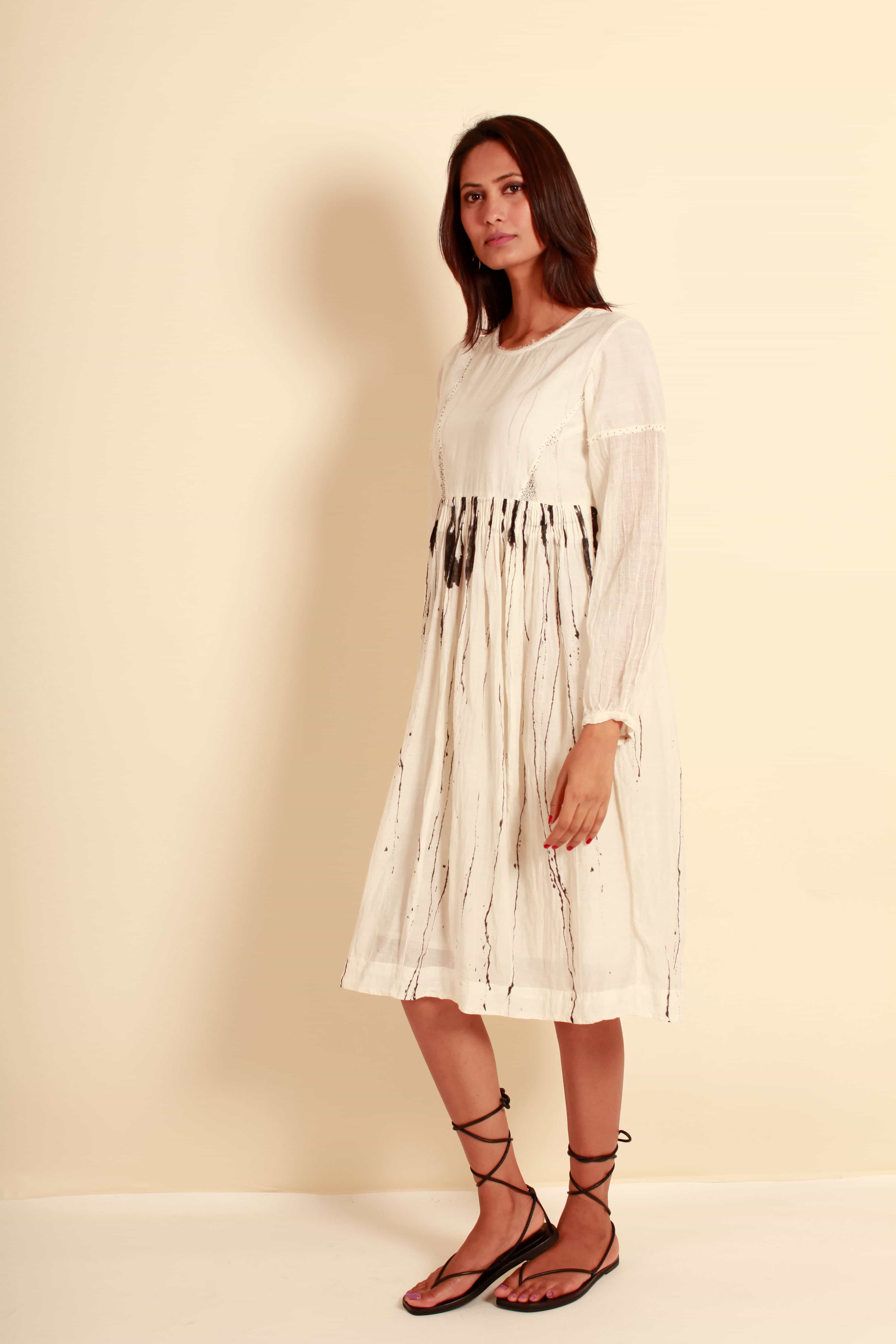 Gathered Dress - White