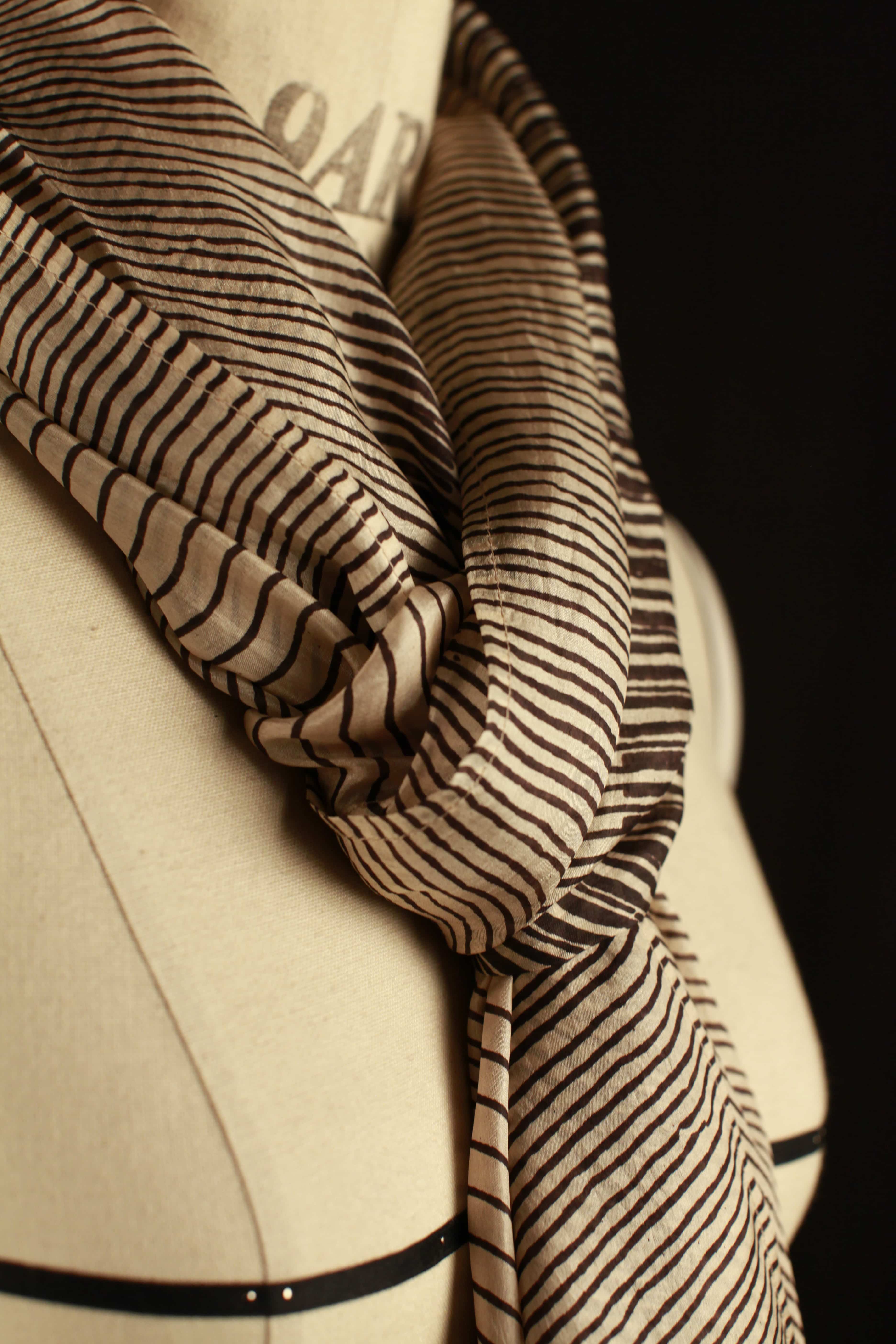 This Stole has been printed using Hand Blocks and with Natural Dyes and in many cases on Hand Woven Silk. Imperfections in printing and weaving are inherent and usually cannot be avoided - in fact, these imperfections impart a unique character and mystique to each piece.